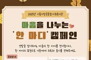 원스텝뉴스 이병희 기자 | 시흥시장곡종합사회복지관은 연말을 맞아 지역사회에 따뜻한 마음을 전하기 위한 ‘마음을 나누는 한 마디’ 캠페인을 진행한다. 이번 캠페인은 이웃을 향한 응원의 말, 위로의 말, 사랑의 말을 담은 짧은 문장을 시민들로부터 응모 받아 서로에게 위로와 용기를 건네는 나눔의 장을 만들기 위해 마련됐다. 참여자는 직접 창작한 문장 또는 문학 작품 속 인용문 중 마음을 전하고 싶은 한 문장을 제출할 수 있다. 응모 기간은 11월 3일부터 11월 14일까지이며, 시흥시민이라면 누구나 참여할 수 있다. 참여 방법은 시흥시장곡종합사회복지관 1층 복도 현장 신청 또는 온라인으로 하면 된다. 선정된 문장은 내부 심사를 거쳐 캘리그래피 작품으로 제작되며, 오는 12월 시흥시장곡종합사회복지관 복도갤러리에서 전시된다. 전시된 작품은 시민들에게 한 해를 따뜻하게 마무리할 수 있는 작은 위로의 메시지로 전달될 전망이다. 시흥시장곡종합사회복지관 관계자는 “짧은 문장이지만, 시민 한 사람 한 사람의 따뜻한 마음이 모여 이웃에게 큰 위로가 될 것”이라며 “많은 시민이 이번 캠페인에 참여해 따뜻한 시흥을 함께