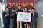 원스텝뉴스 이병희 기자 | 남양주시는 9일 금곡동 소재 ㈜서울빙과총판이 진건읍 위기가구를 위한 후원금 300만 원을 전달했다고 밝혔다. 이번 후원은 진건읍 지역사회보장협의체가 연말연시를 맞아 운영 중인‘진건읍, 사랑의 나눔존 나눔트리’나눔 릴레이의 일환으로 추진됐다. 전달된 후원금은 경기사회복지공동모금회를 통해 진건읍 지역사회보장협의체로 지정 기탁되며, 2026년부터 위기가구 신속 응대 사업 ‘바로지원 꾸러미’에 활용된다. 이 사업은 위기 상황에 놓인 가구에 식료품 등 꾸러미를 신속하게 전달해 일시적인 위기를 완화하고 생활 안정을 도모하는 것을 목표로 한다. 엄관용 대표는 “지역사회와 함께 성장해 온 기업으로서 어려운 이웃에게 실질적인 도움을 되고자 후원을 했다”며 “이번 후원이 위기가구를 위한 신규 사업에 활용된다고 생각하니 더욱 뜻깊다”고 전했다. 김학철 진건퇴계원행정복지센터장은 “민간의 따뜻한 나눔이 위기가구를 신속히 지원하는 중요한 밑거름이 된다”며 “앞으로도 민관협력을 바탕으로 촘촘한 복지 안전망을 구축해 나가겠다”고 말했다. 박현정 진건읍 지역사회보장협의체 위원장은 “이웃을