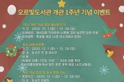 원스텝뉴스 천규영 기자 | 동두천시 오르빛도서관이 개관 1주년을 맞아 12월 한 달간 다채로운 문화행사를 진행한다. 오르빛도서관은 지난해 12월 개관 이후 시민들의 높은 관심 속에 지역 대표 독서문화 공간으로 자리매김해왔다. 이번 행사는 지역 주민과 함께 도서관의 성장을 기념하고, 책과 문화가 어우러지는 복합문화공간으로서의 역할을 강화하기 위해 마련됐다. 우선 12월 6일에는 1주년 기념 특별행사가 열린다. '제이시아'와 함께하는 클래식 콘서트, '김슬기 작가 초청 1인 어린이 인형극', 가족 참여형 '크리스마스 무드등 만들기 체험' 등이 진행되며, 카카오톡 친구 추가 이벤트와 떡 나눔 행사 등 시민이 함께 즐길 수 있는 프로그램도 준비된다. 이어 12월 9일에는 '김민식 작가 초청 특강'이 예정되어 있다. 특강은 도서관 4층 어린이자료실에서 시민 100명을 대상으로 진행되며, 시민의 문화 감수성을 높이고 독서문화 저변을 확대하는 계기가 될 것으로 기대된다. 이 밖에도 이용자 설문조사, ‘나만의 서재 꾸미기’ 프로그램, 축하 메시지 게시, 도서 대출 이벤트, 1주년 기념 축하영상 상영 및 원화 전시