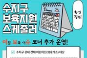 원스텝뉴스 이병희 기자 | 용인특례시 수지구는 보육 정책 등을 알기 쉽게 정리한 ‘보육지원 스케줄러’에 이달 보육 이슈 항목을 신설했다고 15일 밝혔다. 구는 사업별 신청·정산 시기가 달라 신청 오류, 누락 등의 민원이 빈번함에 따라, 이를 해결하기 위해 2025년부터 보육지원 스케줄러를 운영하고 있다. 보육지원 스케줄러는 어린이집과 보육 교사 등을 대상으로 각종 지원 사업의 일정 등을 사전에 공유해 대상자들이 빠짐없이 신청할 수 있도록 돕고자 마련됐다. 구는 매달 신청·정산 지원사업, 제출일, 제출 방법, 주요 변경사항 등을 표로 만들어 보육인 오픈 채팅방과 보육통합정보시스템에 선보이고 있다. 여기에 이달 보육 이슈 항목을 추가해 지역 내 어린이집 182곳을 대상으로 매월 각종 지원사업을 사전에 알리고 변경되는 정책과 최근 이슈, 주요 정보 등을 상세히 제공하기로 했다. 구 관계자는 “보육 교사들의 업무 부담을 덜고, 효율적인 보육 현장을 지원하기 위해 이달 보육 이슈 코너를 마련했으니 유용하게 이용해 주시기를 바란다”고 했다.