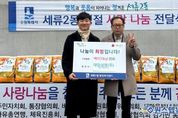 원스텝뉴스 이병희 기자 | 지난 11일, 수원시 권선구 세류동에 소재한 대일실업(주)는 설 명절을 맞이하여 취약계층을 위한 백미(10kg) 25포를 세류2동 행정복지센터에 기부했다. 대일실업(주)는 매년 명절마다 사랑 나눔을 실천하고 있으며, 이번에 기부된 백미는 생활에 어려움을 겪는 취약계층 25 가구에 전달될 예정이다. 김진수 대표는 “지역사회 이웃들이 설 명절을 맞아 소외되지 않도록, 사랑 나눔이 따뜻한 위로가 되길 바란다”라고 전했다. 변영호 세류2동장은 “매년 사랑 나눔을 실천을 해주신 대일실업(주)에 감사드리며, 앞으로도 민·관 협력을 통해 행복과 웃음이 피어나는 정겨운 세류2동을 만들기 위해 최선을 다하겠다”라고 말했다.