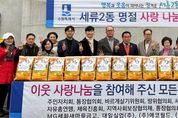 원스텝뉴스 이병희 기자 | 지난 11일, 수원시 권선구 세류2동은 설 명절을 맞이하여 사랑 나눔 전달식을 개최했다. 이날 마련된 후원 물품은 취약계층 약 379 가구에 직접 전달될 예정으로 지역사회에 사랑이 전해지는 명절이 될 것으로 기대된다. 이번 전달식에는 세류2동 주민자치회, 통장협의회, 새마을부녀회, 새마을문고, 바르게살기위원회, 자유총연맹, 체육진흥회, 방위협의회, 지역사회보장협의체 등 9개 단체의 단체장과 ㈜대일실업, ㈜광신이 참여했다. 이와 함께 MG세화새마을금고, ㈜에코월드, 영광광고기획 등 지역 내 여러 기관과 개인 후원자의 사랑 나눔도 더해져 행사에 의미를 더했다. 변영호 세류2동장은 “어려운 시기에 지역사회 관심으로 사랑 나눔에 참여해 주신 단체(기관)에 감사드리며, 앞으로도 유관 기관과 적극 협력으로 행복과 웃음이 피어나는 정겨운 세류2동을 만들기 위해 최선을 다하겠다”라고 말했다.
