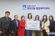 원스텝뉴스 이병희 기자 | 수원시 권선구 수원천 축제 추진위원회(세류1·2·3동 주민자치회장)는 지난 19일, 권선구청을 방문하여 2025년 취약계층을 돕기 위한 기부금 100만원을 전달했다. 수원천 축제 추진위원회는 세류1동·2동·3동 주민자치회에서 합동으로 마을축제를 추진하기 위해 만든 단체로, 지난 10월 25일(토)에 개최한 수원천 축제에서 발생한 수익 중 일부를 사회복지공동모금회 경기도지회를 통해 전달할 예정이다. 조성만 세류1동 주민자치회장은 “주민들의 참여와 응원으로 성공적으로 마무리된 수원천 축제의 수익금을 지역 이웃들에게 다시 돌려드릴 수 있어 매우 뜻깊게 생각한다”라며 “작은 나눔이지만 도움이 필요한 분들께 힘이 되기를 바라며, 앞으로도 주민들과 함께하는 지속적인 나눔 활동을 이어가겠다”라고 말했다. 김종석 구청장은 “지역의 어려운 이웃을 위해 따뜻한 손길을 전해주신 세류1동·2동·3동 주민자치회에 깊은 감사의 말씀을 드리며, 구청도 취약계층 지원과 복지 증진에 최선을 다하여, 모든 주민이 함께 웃을 수 있는 지역을 만들기 위해 지속적으로 노력하겠다”라고 말했다.