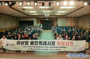 원스텝뉴스 천규영 기자 | 이상일 용인특레시장은 16일 오전 수지구 큰어울마당에서 대한노인회 용인시 수지구지회가 운영하는 수지청춘노인대학 어르신 100여 명을 대상으로 미술 특강을 했다. 이상일 시장은 이날 ‘한국의 초고가 미술품과 화가들 스토리’를 주제로 김환기, 이중섭, 박수근 등의 작품 해설과 함께 작품이나 화가와 관련한 여러 일화를 이야기했다. 이 시장은 김환기 화백의 ‘우주’를 보여주면서 “경매 낙찰가를 기준으로 국내 화가 작품 중 1위부터 10위까지가 모두 김 화백의 작품”이라고 설명하며 특강을 시작했다. 이상일 시장은 “김환기 화백의 ‘우주’는 2019년 11월 크리스티 홍콩 경매에서 한화로 약 132억 원에 낙찰돼 한국 화가의 작품 중 경매 기준으로 최고가 작품”이라고 했다. ‘우주’는 김 화백이 미국 뉴욕에 거주하던 시절 그린 작품으로 김 화백의 전면점화 가운데 가장 큰 그림이자 그가 남긴 유일한 두폭화다. 이 시장은 김환기 화백의 작품인 ‘3-Ⅱ-72 #220’과 ‘9-Ⅻ-71 #216’, ‘무제(Untitled)’ 등 구체적인 제목이 아닌 작품 번호로 이뤄진 작품들을