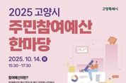 원스텝뉴스 천규영 기자 | 고양특례시는 오는 10월 14일 오후 3시 30분, 일산호수공원 고양꽃전시관(북카페)에서 ‘2025년 고양특례시 주민참여예산 한마당’을 개최한다고 밝혔다. 주민참여예산제는 예산 과정에 시민이 직접 참여함으로써 지역의 주인 의식을 높이고 재정민주주의를 실현하는 중요한 제도다. 시는 지난해 7월부터 올해 6월 말까지 온오프라인을 통해 총 250건의 주민 제안사업을 접수받았다. 이후 소관 부서의 검토와 주민참여예산위원회의 심사를 거쳐 온라인 시민투표를 실시하고 그 결과를 이번 행사에서 공개할 예정이다. 현재 고양시청 누리집(홈페이지)에서는 2026년도 주민참여예산 제안사업에 대한 사전 온라인 시민투표(9.26.~10.8.)가 진행 중이다. 이번 행사에서는 2025년도 주민참여예산으로 반영돼 실제로 실행된 사업 중 우수 실행사례도 함께 소개된다. 주민참여예산의 의미를 시민들과 다시 공유하고, 향후 제도의 발전 방향을 함께 모색하는 자리가 될 예정이다. 행사에서 결정된 제안사업 우선순위는 오는 10월 중 ‘주민참여예산 조정협의회’심의를 거쳐 2026년도 고양시 예산안에