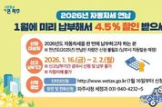 원스텝뉴스 이병희 기자 | 파주시는 2026년도 자동차세를 1월에 한 번에 납부하는 경우 세액공제 혜택을 받을 수 있는 자동차세 연납 신청·납부를 2월 2일까지 접수한다고 밝혔다. 자동차세는 매년 6월과 12월 2회에 걸쳐 부과되는 후납적 성격의 세금이나, 1월에 연세액을 한번에 납부하는 경우 4.5%를 공제받을 수 있어 납세자의 세 부담을 줄일 수 있다. 특히 1월 연납은 연중 가장 높은 공제율이 적용돼 절세 효과가 크다. 자동차세 연납은 1월 외에도 3월, 6월, 9월에도 신청이 가능하지만, 공제율은 각각 연세액의 3.7%, 2.5%, 1.2%로 점차 낮아진다. 또한 연납 후 차량의 소유권이 이전되거나 폐차·말소되는 경우에는 소유 기간을 제외한 잔여기간에 대한 자동차세를 환급받을 수 있다. 자동차세 연납은 신고·납부가 원칙이지만, 파주시는 납세 편의를 위해 지난해 자동차세를 연납한 차량에 대해서는 별도의 신청 없이 연납 납부서를 발송할 예정이다. 다만, 지난해 연납하지 않았거나 차량을 새로 취득한 경우에는 ▲위택스를 통해 신청하거나, 파주시청 세정과 방문 또는 전화를 통해 자동차세 연납 신청을 할 수 있다.
