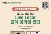 원스텝뉴스 천규영 기자 | 의왕시 이팝아트홀(의왕시 왕곡로74)이 11월 22일 오후3시, 지역 예술인들이 함께 꾸미는 음악 축제 ‘Live Local:음악, 여기에 있다’를 개최한다. 이번 공연은 지역의 숨은 전문예술인을 발굴·지원하고 예술인 간 네트워크를 형성하기 위해 기획된 무대로, 시민들이 일상 속에서 가까이 음악을 즐길 수 있는 특별한 시간을 선사한다. 무대에는 의왕을 중심으로 활동 중인 밴드 ‘청아’와 싱어송라이터 ‘심가원’이 출연한다. 두 아티스트는 자신만의 감성과 음악 세계를 바탕으로 도시의 일상과 청춘의 순간들 따뜻한 멜로디로 풀어낼 예정이다. 밴드 ‘청아’는 서정적이면서도 에너지 넘치는 사운드와 깊이 있는 보컬, 따뜻한 선율로 관객의 공감을 이끌 예정이다. 심가원은 진솔한 가사와 부드러운 음색으로 사람 사이의 감정을 노래하며 공감을 전한다. 윤은숙 의왕시 문화관광과장은 “이번 공연은 지역 예술인들이 주체가 되어 시민과 호흡하는 뜻깊은 무대”라며 “많은 분들이 지역에서 피어나는 예술의 생동감을 즐기셨으면 좋겠다”고 말했다.