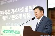 원스텝뉴스 이병희 기자 | 박승원 광명시장이 지속가능발전의 핵심 정책으로 대두되고 있는 ‘기본사회’에 대해 시민 참여가 성패를 가를 것으로 전망했다. 박 시장은 24일 오후 국회의원회관에서 열린 ‘기본사회를 실현하는 지방정부 정책발표회’에 참석해 광명시 사례를 발표하면서 “지속가능한 정책의 핵심은 시민들의 활발한 참여에 있다”고 말했다. 박 시장은 또 “시민들과 함께 만들어가는 정책만이 완성도를 높이고, 궁극적으로 국가 경쟁력까지 끌어올릴 수 있다”고 주장했다. 기본적인 사회적 권리를 보장하는 기본사회 조례가 성공적으로 정착하고 작동하기 위해서 기본권의 구성과 실현 방법에 시민 참여가 필수적이라는 의미이다. 박 시장은 “시민을 중심으로, 시민에 의해 만들어지는 기본사회만이 지속가능하며, 동시에 지방정부만의 특색을 담은 살아 있는 정책이 될 것”이라고 덧붙였다. 박 시장은 이날 광명시가 전국 최초로 제정한 ‘기본사회 조례’에 대해 발표했다. 세미나에는 박주민 국회의원(국회 기본사회포럼 대표의원)을 비롯해 전춘성 진안군수, 정명근 화성시장, 최영일 순창군수 등이 참석했다. 지난