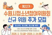 원스텝뉴스 이병희 기자 | 수원시청소년청년재단(이사장 최종진)은 수원시 청소년의 정책 참여 확대와 권익 증진을 위해 '제22기 수원시청소년참여위원회' 위원을 추가 모집한다고 밝혔다. 수원시청소년참여위원회는 청소년기본법5조의2(청소년자치권의 확대)에 따라 청소년이 직접 정책 제안과 의견 개진에 참여하며 청소년 정책의 실효성을 높이기 위해 운영되는 공식 참여기구이다. 이번 추가 모집은 수원시에 거주하는 9세부터 24세까지의 청소년을 대상으로 하며 총 20명 내외를 선발할 예정이다. 활동 기간은 2026년 3월부터 12월까지이며 주요 활동 내용은 △수원시 청소년 정책 제안‧발굴 및 자문 △정책 관련 전문교육 참여 △청소년축제 기획 및 운영 △경기도 청소년참여위원회 및 관내 참여기구 교류 활동 등이다. 참여위원회 위원에게는 수원시장 명의의 위촉장이 수여되며 활동에 따라 봉사시간도 부여된다. 모집 기간은 2026년 2월 13일부터 2월 24일까지이며 신청은 재단 홈페이지 또는 수원시청소년청년재단 경영지원실로 문의하면 된다.