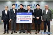 원스텝뉴스 이병희 기자 | 수원시 농수산물도매시장 5개 도매법인이 “취약계층 시민을 지원하는 데 사용해 달라”며 수원시에 3500만 원을 기부했다. 20일 수원시청에서 열린 전달식에는 이재준 수원시장과 기부에 참여한 경기청과㈜ 박정준 대표이사, 수원청과물㈜ 이영기 대표이사, 수원지구원예농협 임한식 신용상무, 수원수산시장㈜ 송민규 대표이사, 경기수협 이경수 수원사업소장, 과일·채소 중도매인연합회 임원진 등이 참석했다. 수원시는 5개 도매법인의 후원금을 취약계층 지원을 위한 복지사업에 활용할 예정이다. 과일·채소 중도매인연합회는 “농수산물도매시장 내 화장실 증축 공사를 지원해 준 수원시에 감사드린다”며 감사패를 전달했다. 이재준 수원시장은 “경제적으로 어려움을 겪는 이웃을 위해 나눔을 실천해 주신 수원시 농수산물도매시장 도매법인에 감사드린다”며 “후원금은 도움이 필요한 이웃들을 위해 사용하겠다”고 말했다.