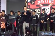 원스텝뉴스 이병희 기자 | 이재준 수원특례시장이 29일 ‘2025 kt 위즈 팬페스티벌’에서 “팬 한분 한분의 열렬한 응원을 발판 삼아 내년 시즌에도 ‘마법 같은 경기’ 펼치길 응원한다”며 “앞으로도 변함없는 응원과 우렁찬 함성으로 kt위즈와 함께 해주시길 바란다”고 말했다. 수원컨벤션센터 전시홀에서 열린 이날 행사에는 kt 위즈 야구팬(시즌권 회원 등), kt 위즈 1·2군 선수 등 5000여 명이 참석했다. 행사는 팬 사인회, 야구 꿈나무 대상 체험 레슨, 팬과 선수가 함께하는 듀엣 가요제 등으로 진행됐다.