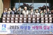 원스텝뉴스 이병희 기자 | 수원시 장안구 파장동 새마을부녀회는 11일, 지역 주민들과 함께 ‘사랑의 김장 나누기’ 행사를 열고 따뜻한 정을 나눴다. 이번 행사에서 새마을부녀회는 직접 김장을 하고 정성껏 포장해 기초생활수급자, 독거노인, 취약계층 250가구에 전달했다. 정성스럽게 준비된 김치는 겨울철 이웃들의 식탁에 온기를 더해줄 예정이다. 박용희 파장동 새마을부녀회장은 “김장은 단순한 음식 장만이 아닌 정성과 마음이 담긴 겨울 준비”라며 “이웃을 생각하며 함께 담근 김치가 어려운 분들께 따뜻한 위로가 되길 바란다”고 말했다. 장인영 파장동장은 “어려운 이웃을 위해 정성껏 김장을 준비해주신 새마을부녀회와 여러 단체 및 후원해 주신 분들께 감사드리며 파장동의 사랑과 정성이 잘 전달될 수 있도록 하겠다”고 전했다. 파장동은 매년 겨울을 앞두고 김장 나눔 행사를 통해 이웃 간의 온정을 나누고 있으며 올해도 지역 주민들의 자발적인 참여와 후원으로 더욱 풍성한 나눔의 장이 마련될 것으로 기대해 본다.