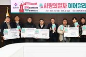 원스텝뉴스 이병희 기자 | 2026년 붉은 말의 해, 용인특례시 사랑의 열차 이어달리기에 지역사회 따뜻한 나눔의 손길이 이어지고 있다. ‘사랑의 열차 이어달리기’는 용인의 대표 연말연시 이웃돕기 운동이다. 시는 지난해 12월 3일 시청 컨벤션홀에서 ‘희망 2026나눔캠페인 사랑의 온도탑제막식 및 사랑의 열차 이어달리기 발대식’을 열었다. ‘사랑의 열차 이어달리기’는 2월 6일까지 총 68일 동안 이웃돕기 성금 14억 원 모금을 목표로 이뤄진다. 삼성노블라이프 주식회사가 지난해 12월 23일 바자회 수익금 534만9000원을 기탁했다. 같은 날 에버찜질사우나는 성금 500만원을, ㈜토오텍 성금 200만원을, ㈜액션테크는 627만원 상당의 소화기 230대를 시에 기탁했다. 또 ㈜경자네식구들은 350만원 상당의 밀키트 1,000개를, 용인시 기업지원과는 성금 100만원을 전달했다. 수지구청 직장어린이집은 지난해 12월 29일 어려운 이웃에 전달해 달라며 라면 366개를 기탁했다. 이영애 원장은 “아이들이 직접 보고 느끼는 나눔의 기쁨을 통해 진짜 크리스마스의 의미를 느낄 수 있었을 것”이라고 했다. &n
